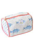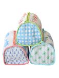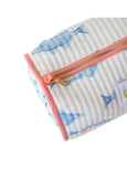 The most adorable bag to keep your toiletries tidy at home or on the go! * 100 percent cotton * Quilted texture * 11 inches long | 6.5 inches high | 7 inches deep * Includes interior dual pocket * Mild hand-wash cold, hang dry and warm iron * Made with great care in India